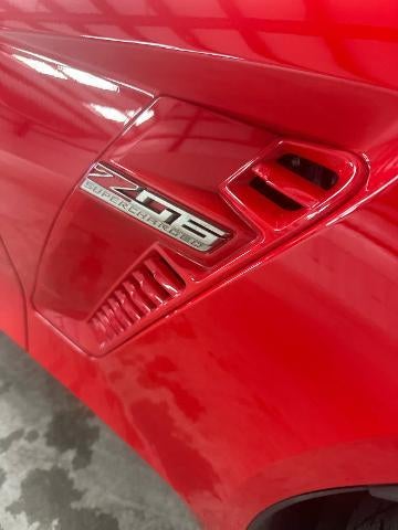 WHEELS, Z06 CHROME ALUMINUM 19 x 10 (48.3 cm x 25.4 cm) front and 20 x 12 (50.8 cm x 30.48 cm) rear, TRANSMISSION, 8-SPEED PADDLE SHIFT WITH AUTOMATIC MODES, REMOTE VEHICLE STARTER SYSTEM, REAR AXLE, 2.41 RATIO, ELECTRONIC LIMITED SLIP (ELSD), AUDIO SYSTEM, CHEVROLET MYLINK RADIO with 8 diagonal color touch-screen, AM/FM stereo with seek-and-scan and digital clock, includes Bluetooth® streaming audio for music and select phones; voice-activated technology for radio and phone; featuring Apple CarPlay capability for compatible phone (STD), ENGINE, 6.2L (376 CI) SUPERCHARGED V8 DI (650 hp [485 kW] @ 6400 rpm, 650 lb-ft of torque [878 N-m] @ 3600 rpm) (STD). Chevrolet Z06 1LZ with Torch Red exterior and Jet Black interior features a 8 Cylinder Engine with 650 HP at 6400 RPM*.