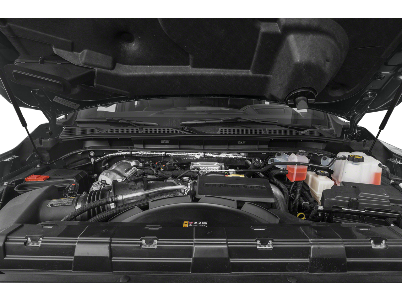 ENGINE, DURAMAX 6.6L TURBO-DIESEL V8, B20-DIESEL COMPATIBLE (445 hp [332 kW] @ 2800 rpm, 910 lb-ft of torque [1220 Nm] @ 1600 rpm) (Includes (K05) engine block heater.), WHEELS, 20 (50.8 CM) MACHINED ALUMINUM with high gloss Black accents, AUDIO SYSTEM, PREMIUM GMC INFOTAINMENT SYSTEM WITH 8 DIAGONAL COLOR TOUCH-SCREEN includes multi-touch display, AM/FM stereo, Bluetooth® streaming audio for music and most phones; featuring wireless Android Auto and Apple CarPlay capability for compatible phones, advanced voice recognition, in-vehicle apps, personalized profiles for infotainment and vehicle settings (STD) (Includes (PZ8) Hitch Guidance with hitch view.), TRANSMISSION, ALLISON 10-SPEED AUTOMATIC. GMC AT4 with Summit White exterior and Jet Black with Kalahari Accents interior features a 8 Cylinder Engine with 401 HP at 5200 RPM*.